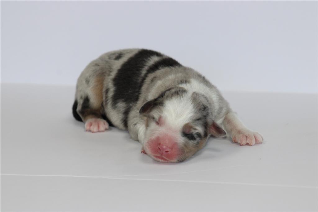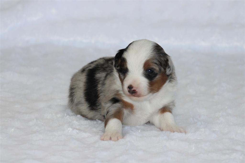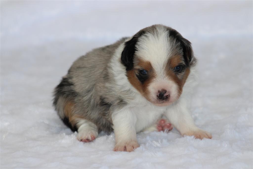 Skye is the complete package: Intelligent,inquisitive, energetic, affectionate, fearless, and of course a little bit mischievous...everything we wanted in our Aussie. Thank you Canyon Creek Aussies!