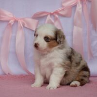 Meet our mini litter Texas City litter by Gidget and Milo! Born January 8th and already little chubbies! Gidget is the best mother. This is the 2rd litter for Gidget and Milo. Gidgets puppies are ALWAYS loved and highly requested. You can read more about Gidget and Milo below. We expect the litter to be about 20-30 pounds full grown with the males being a in the 25-30 range. Abilene is a red merle girl with a half white face. She does have color on her ears. She will most likely have blue eyes! She has a beautiful red merle pattern with some bigger dark red spots! Please continue to read all the information below. It will have take homes days, when pictures were taken, price and at what age pictures were taken.