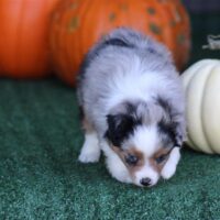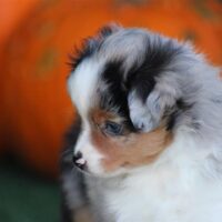 Meet our little Aster of our mini “flower” themed litter. She is one of four puppies in the litter. If you want a tiny girl this is your baby! She in a puppy of Pear and Milo and you can scroll down to click on her mom and dad and meet them there. This is a fourth litter for Pearl and Milo. Pearl has always produced very even tempered babies. Low to medium drive and just sweet, good little pups! Aster is the smallest of the litter. Be surprised if she hits 20 pounds full grown. She has beautiful markings with a lot of copper points. She has two blue eyes. Aster might be smaller but she is mighty! She has a silly personality and LOVES her toys. She is playful and loves your attention. Her pictures were updated Oct. 29 Please keep reading through the information below and to reach us call or text 801-602-9365