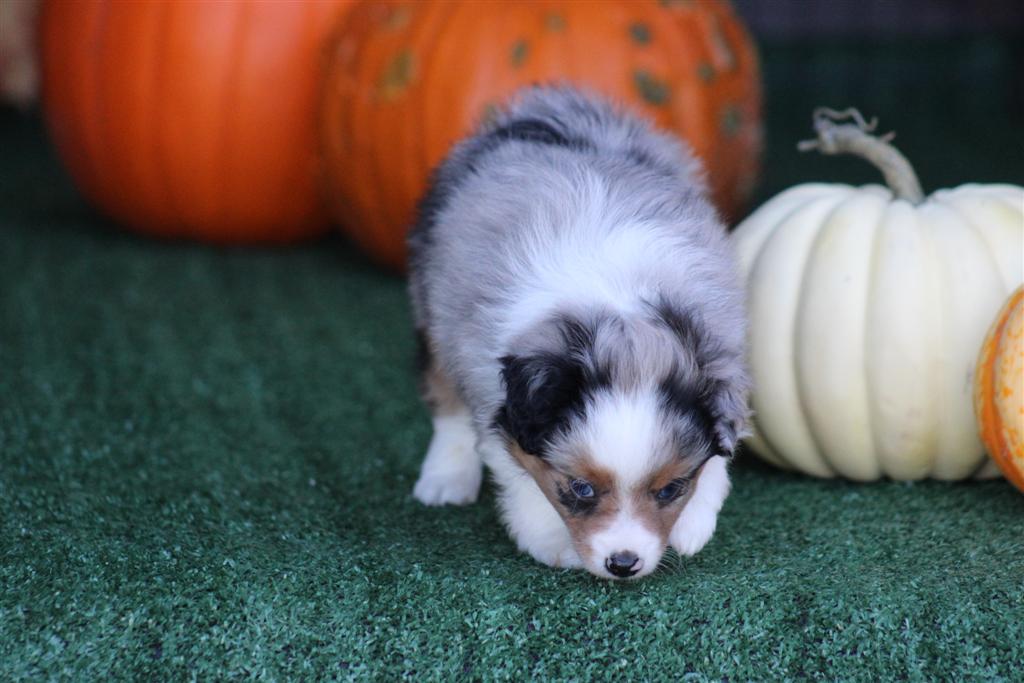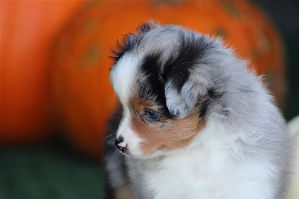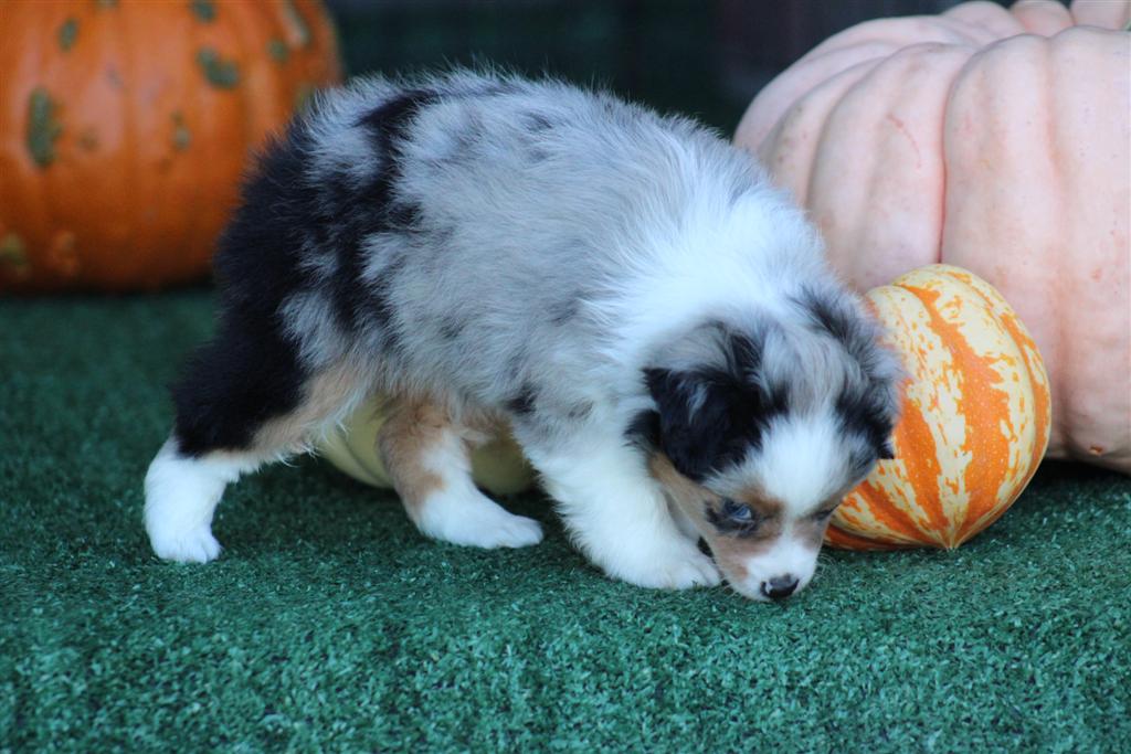 Meet our little Aster of our mini “flower” themed litter. She is one of four puppies in the litter. If you want a tiny girl this is your baby! She in a puppy of Pear and Milo and you can scroll down to click on her mom and dad and meet them there. This is a fourth litter for Pearl and Milo. Pearl has always produced very even tempered babies. Low to medium drive and just sweet, good little pups! Aster is the smallest of the litter. Be surprised if she hits 20 pounds full grown. She has beautiful markings with a lot of copper points. She has two blue eyes. Aster might be smaller but she is mighty! She has a silly personality and LOVES her toys. She is playful and loves your attention. Her pictures were updated Oct. 29 Please keep reading through the information below and to reach us call or text 801-602-9365