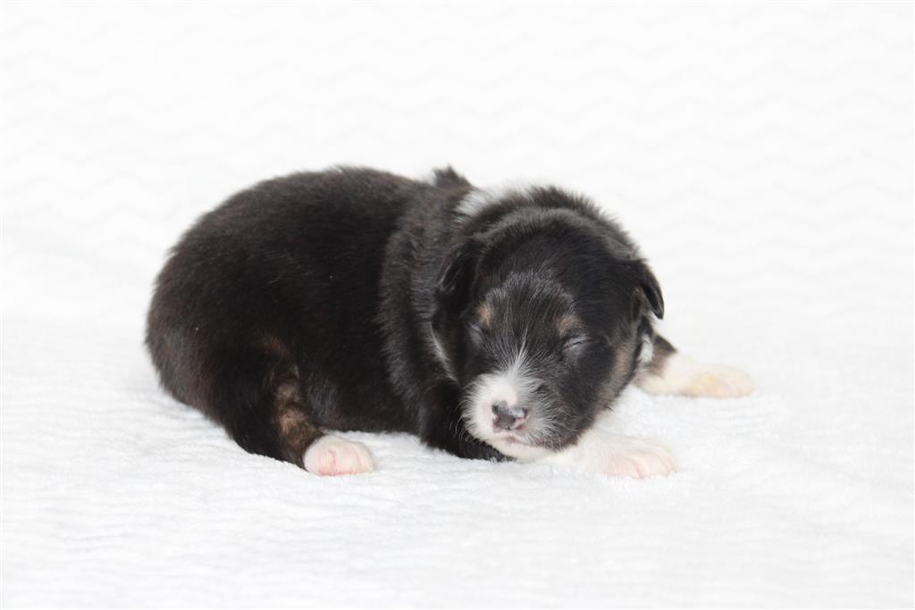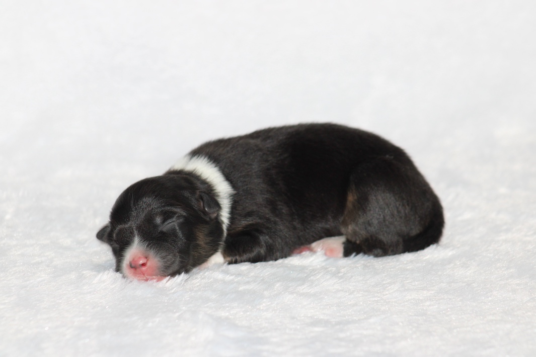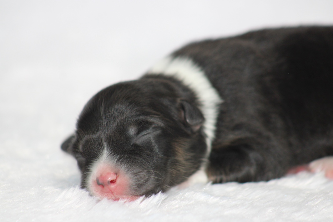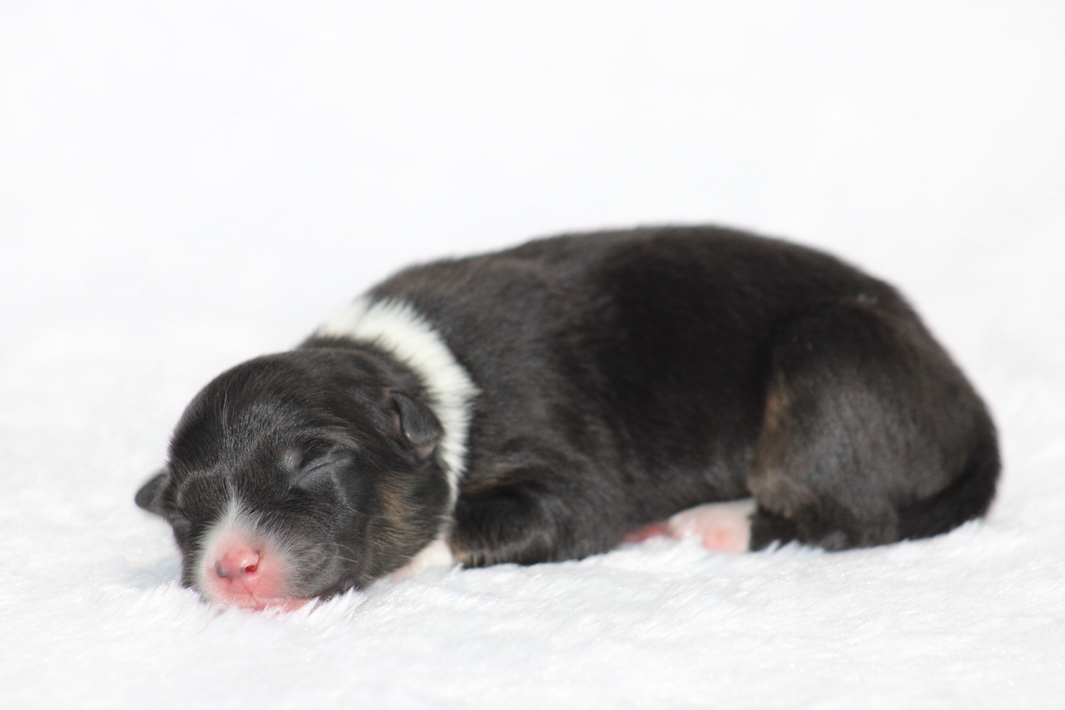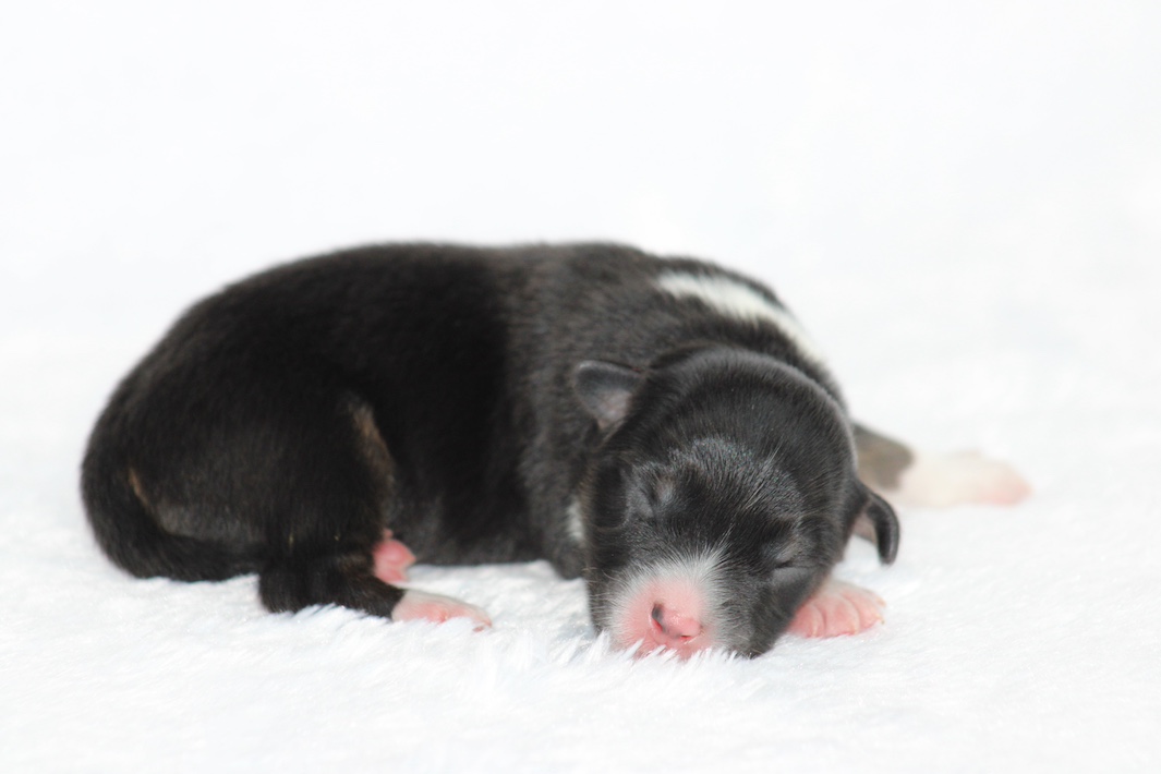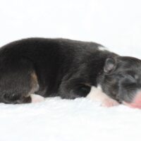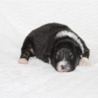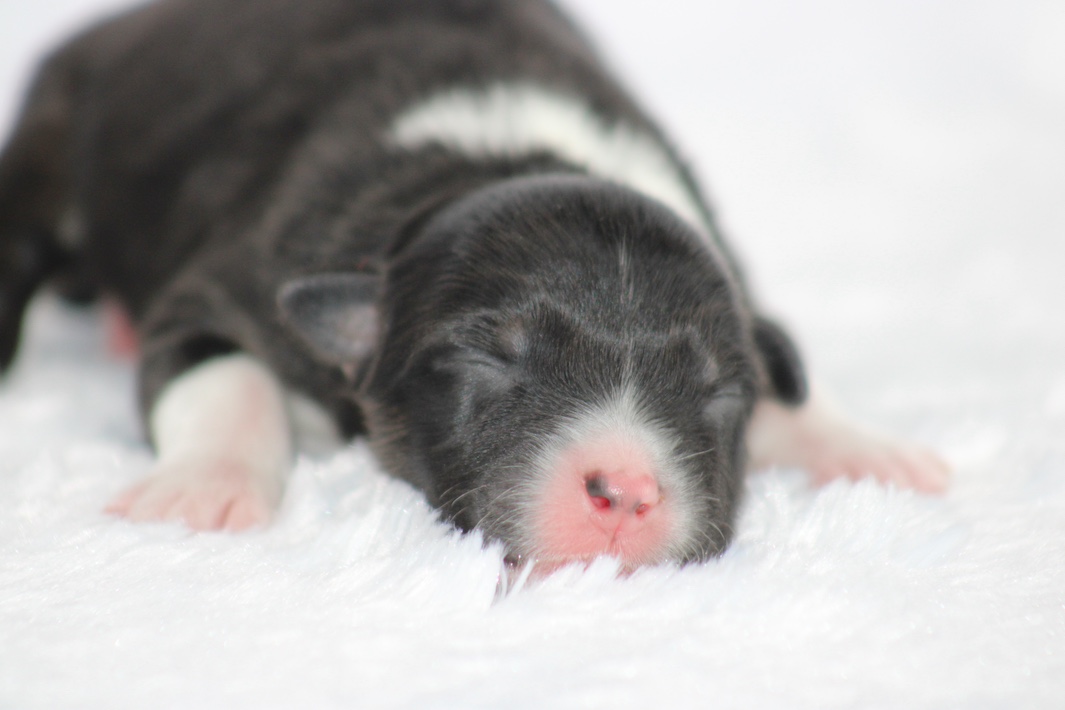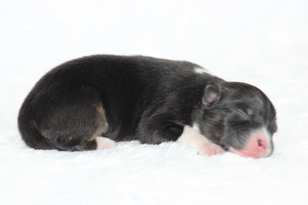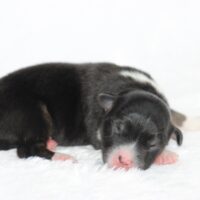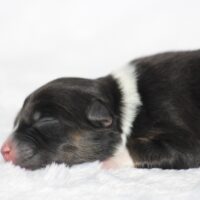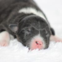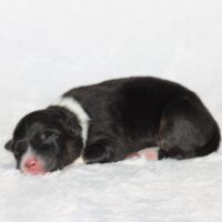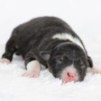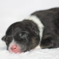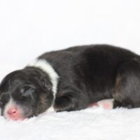 Introducing our biggest litter ever born in 17 years…..WOW is all we can say! 14 puppies. The litter is themes “the new year” . Meet Mr. August! This is a big pup! When he is all done growing he will have those gorgeous copper brows, cheeks and legs. He will have an all black face. No white left. He is estimate do be 55-65 pounds full grown, Betty had 14 puppies but one was still born. So 13 puppies it is and that is a really BIG job for any dog! So we enlisted the help of Peach. Peach had just weaned her litter of 4 and Betty was definitely going to need some help nursing puppies for a few weeks. Peach is a phenomenal mother and she laid right down, began to lick them and let them nurse. Dogs really are incredible. So Betty has the 8 merles and Peach is fostering the 5 tri colors. As of today 1-4, everyone is thriving. This is the 2nd litter for Betty and Randy, yes those were big litters but not this big. Betty raises fantastic little puppies. Past families have been totally happy with their dogs so we definitely wanted to cross Betty and Randy again. We will be holding back the blue merle male December for our program because these are just really good genetics and great tempered dogs.