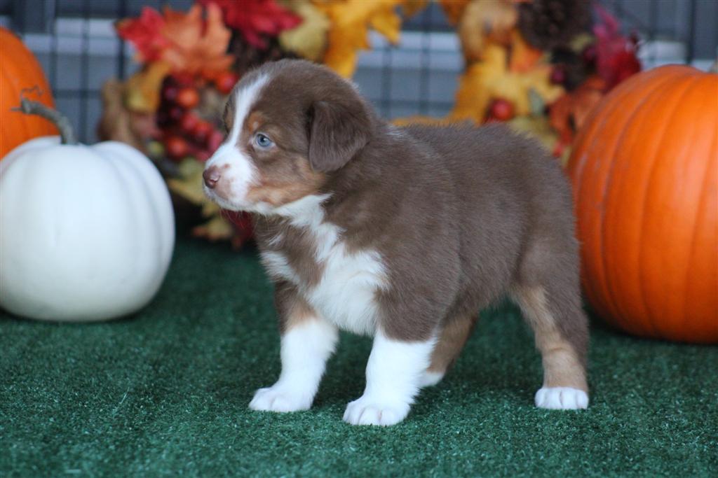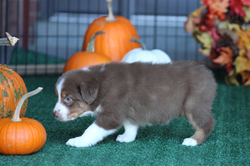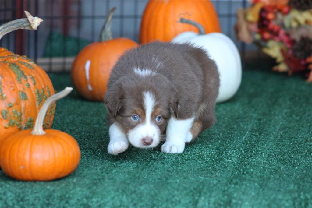 Meet our “fall” theme litter. This is Caramel. Her mom is Suzy Q and dad is Rooster! This is a second time cross from them. (scroll down to meet/click on mom and dad) . She is 3 weeks old as of October 11. Eyes are just now fully open. Its hard to tell eye colors yet but we don’t think she has blue eyes. Caramel will be a solid girl! She has been a favorite of ours since birth. She is built beautifully. Outstanding female. We will update her profile at the 6 week mark when we can begin to see her personality/temperament . Next picture update will be the week of October 26. You can call or text to inquire about this puppy at 801-602-9365. There is more information on her profile below!