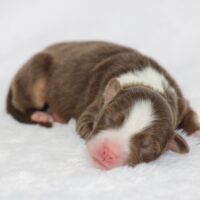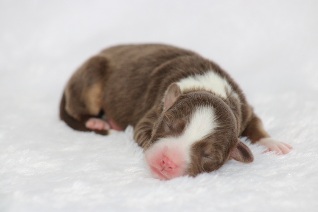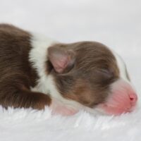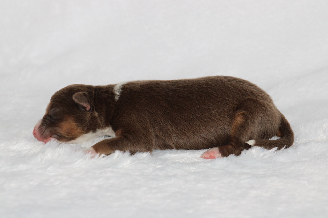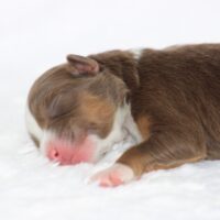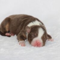 Introducing our biggest litter ever born in 17 years…..WOW is all we can say! 14 puppies. The litter is themes “the new year” . July is our ONLY red tri of the litter and she is a pretty perfect one at that! She is estimated to be 50 pounds full grown. Betty had 14 puppies but one was still born. So 13 puppies it is and that is a really BIG job for any dog! So we enlisted the help of Peach. Peach had just weaned her litter of 4 and Betty was definitely going to need some help nursing puppies for a few weeks. Peach is a phenomenal mother and she laid right down, began to lick them and let them nurse. Dogs really are incredible. So Betty has the 8 merles and Peach is fostering the 5 tri colors. As of today 1-4, everyone is thriving. This is the 2nd litter for Betty and Randy, yes those were big litters but not this big. Betty raises fantastic little puppies. Past families have been totally happy with their dogs so we definitely wanted to cross Betty and Randy again. We will be holding back the blue merle male December for our program because these are just really good genetics and great tempered dogs.