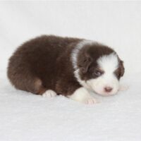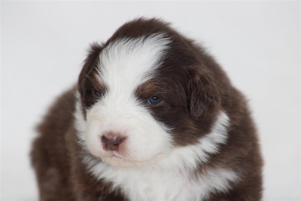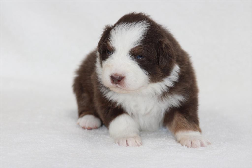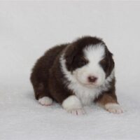 Meet our girl Macaroon ! She is in our “Disney Treats” litter by Purdy & Cool Water! Macaroon sits middle of the pack when it comes to weight. She has perfect white markings on her face with an almost full white collar(little place it doesn’t connect but its hard to tell! She will have green or amber eyes. She sure is a pretty little thing! You can read about her mom and dad in their profiles below. Cool Water has had some AMAZING pups for us and Pudy..well she is a home grown girl, daughter of Randy! Pretzel is 4 week old this coming week of November 3. Pups are now eating puppy food as well as mommas milk still! They still have a lot of growing to do and we super impressed with Purdy being this is her first litter! To inquire about Macaroon can call or text us at 801-602-9365.