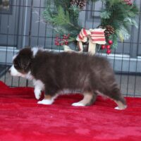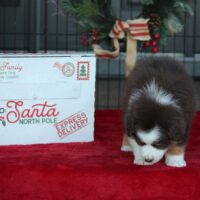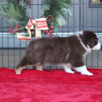 Please tell me I am not dreaming. This pup is stunning. She has tons of presence. She is a leader and she just prances around like she’s Taylor Swift. She is sure of who she is (already at 5 weeks) the pictures tell the story. She is eating great…all of the littermates are. There is a good possibility they will eat us out of house and home in the next few weeks. Appetites are great. Playtime includes venturing from mama and starting to explore their world. They thought the porch as a big place today. It is! Macaroon sits middle of the pack when it comes to weight. She has perfect white markings on her face with an almost full white collar (a small spot doesn’t quite connect but with her ridiculous luxurious coat coming in, you will have a hard time noticing anything about that. You will be too busy just looking at the little queen. Want to inquire about Macaroon? You can call or text us at 801-602-9365.