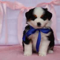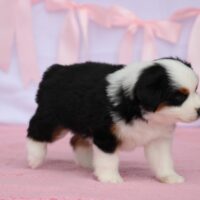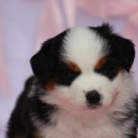 Meet our mini litter Texas City litter by Gidget and Milo! Born January 8th and already little chubbies! Gidget is the best mother. his is San Antonio such a perfect little black tri boy! Look at his blocky little head! SO CUTE. His copper points are definitely poppin, Handsome little dude for sure. He has a very calm demeanor. Definitely low drive puppy. He does like to snuggle, gente plays. I can’t say enough about what a nice little pup this is….BUT brown eyes, black tri…sadly always the last to get picked in a litter. If he were a merle he would have been picked 10x over.
