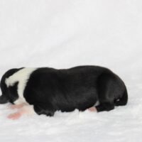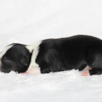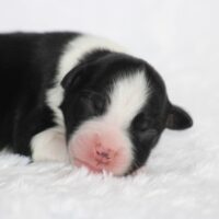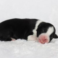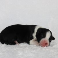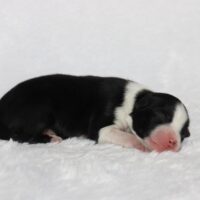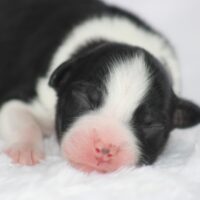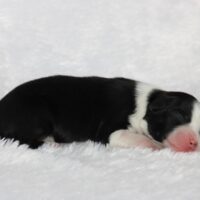 Introducing our biggest litter ever born in 17 years…..WOW is all we can say! 14 puppies. The litter is themes “the new year” . Meet September. If you want a TEXTBOOK black tri, well this is him! This is daddy’s little carbon copy! Look at that blaze face, full white collar and white socks. That copper will just keep developing as he gets older. He is estimated o be 55-60 pounds. Betty had 14 puppies but one was still born.So 13 puppies it is and that is a really BIG job for any dog! So we enlisted the help of Peach. Peach had just weaned her litter of 4 and Betty was definitely going to need some help nursing puppies for a few weeks. Peach is a phenomenal mother and she laid right down, began to lick them and let them nurse. Dogs really are incredible. So Betty has the 8 merles and Peach is fostering the 5 tri colors. As of today 1-4, everyone is thriving. This is the 2nd litter for Betty and Randy, yes those were big litters but not this big. Betty raises fantastic little puppies. Past families have been totally happy with their dogs so we definitely wanted to cross Betty and Randy again. We will be holding back the blue merle male December for our program because these are just really good genetics and great tempered dogs.