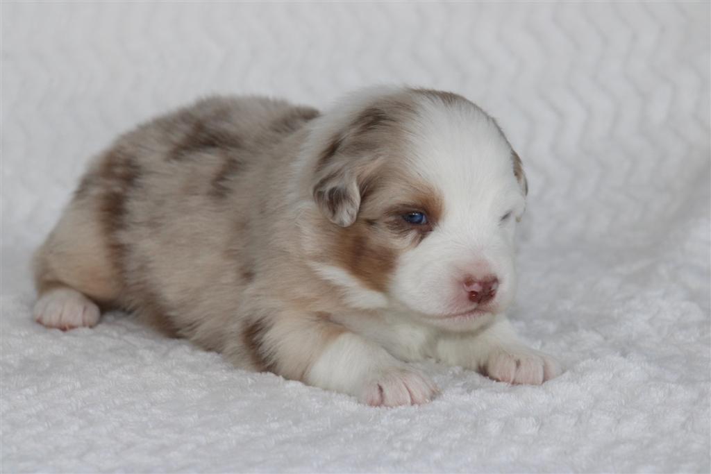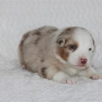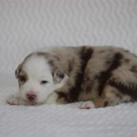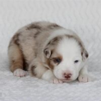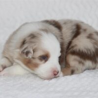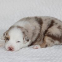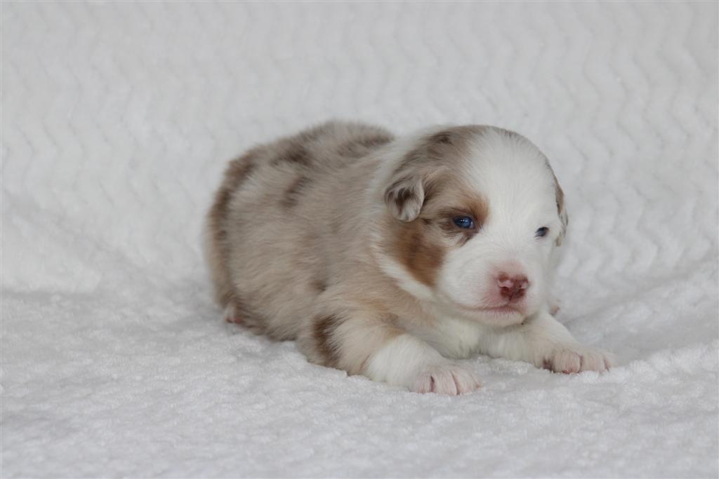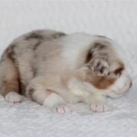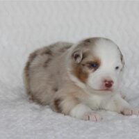 Introducing the “Luxury Hotel” litter by Reba and Cool Water born Christmas Eve! This is the 3rd litter for Reba and Cool Water. We sound like a broken record but if you see Cool water as daddy, you can expect even, low to medium drive temperaments on puppies who love people and other dogs! Wyndam is red merle with a big and bold white blaze. Her markings will deepen in color as she gets older and will be a beautiful red merle pattern. Won’t be shocked if we see two blue eyes on this girl. We will update this profile with her temperament at 6 weeks old. She will be ready for her new home Febuary 18. We do offer several ways to get your new puppy to your home and have a great team to help you do so! There is more information below about Hyatt and our adoption process and we look forward to hearing from you. Fastest way to connect is text/call Angie at 801-602-9365 or you can use the inquire button above to email.