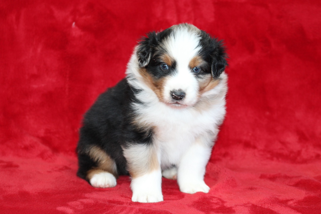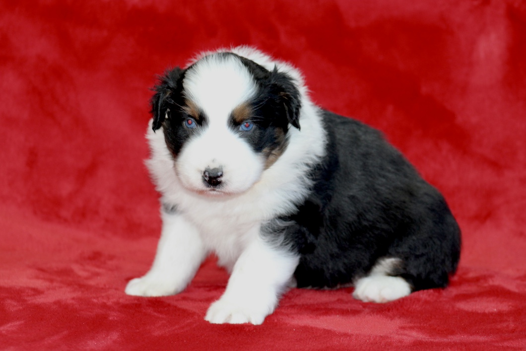Australian Shepherd Male Tri GunnerTwo beauties right here.... This is our Australian Shepherd Male Tri with blue eyes and a loving personality.  Gunner has been Angie's favorite since he was just a puppy.  Is that called puppy love?